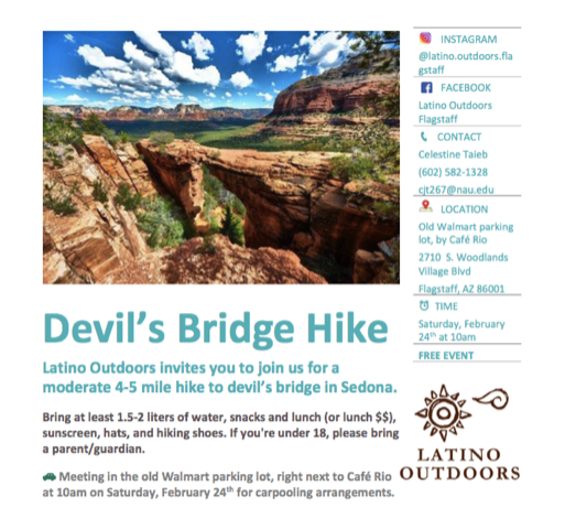 SEDONA — Latino Outdoors invites you to join us for a moderate 4-5 mile hike to Devil’s Bridge in Sedona.