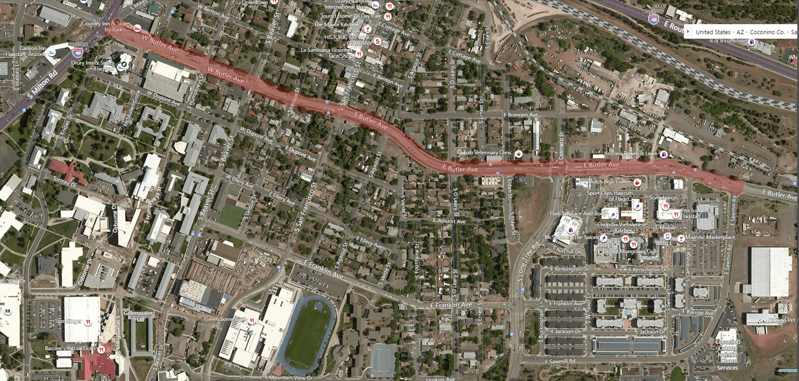 FLAGSTAFF — Work to implement a pilot project installing separated bike lanes on Butler Avenue will begin on Monday, October 18 and will be complete on Friday October 22. The project limits are Butler Avenue, from Milton Road to Sawmill Road.